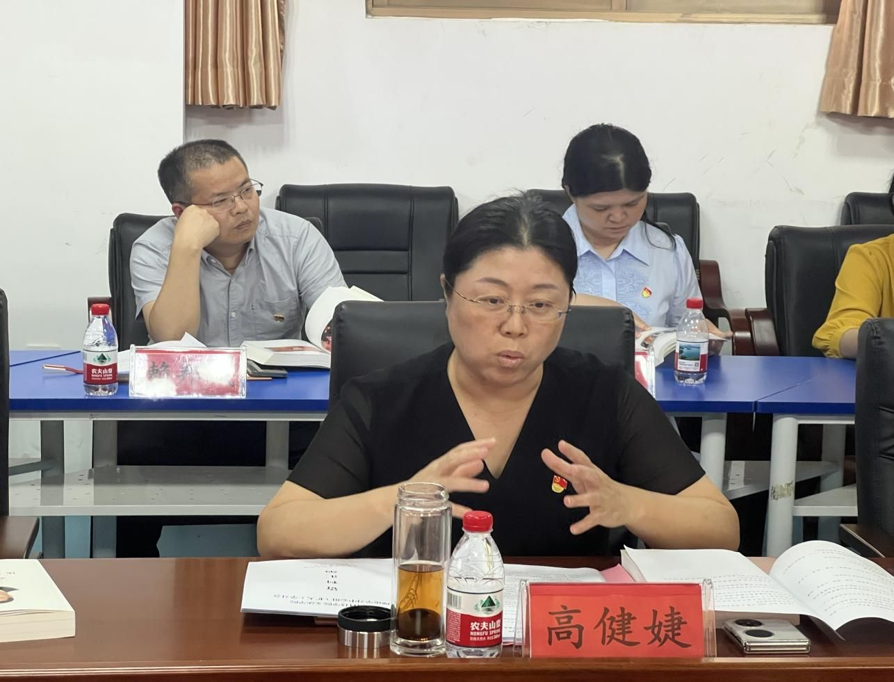 会上,高健婕领学《习近平谈治国理政》第五卷“坚持和加强党中央集中统一领导,把党的自我革命进行到底”专题,强调要以自我革命精神推动学院党建与事业发展深度融合。李敏、程锋、何建军、王军堂分别领学《求是》杂志刊发的习近平总书记重要文章《健全全面从严治党体系》、中共中央政治局第二十一次集体学习重要讲话精神、习近平总书记关于作风建设及网络安全工作的重要指示批示。原汁原味学思想,联系实际谈体会。