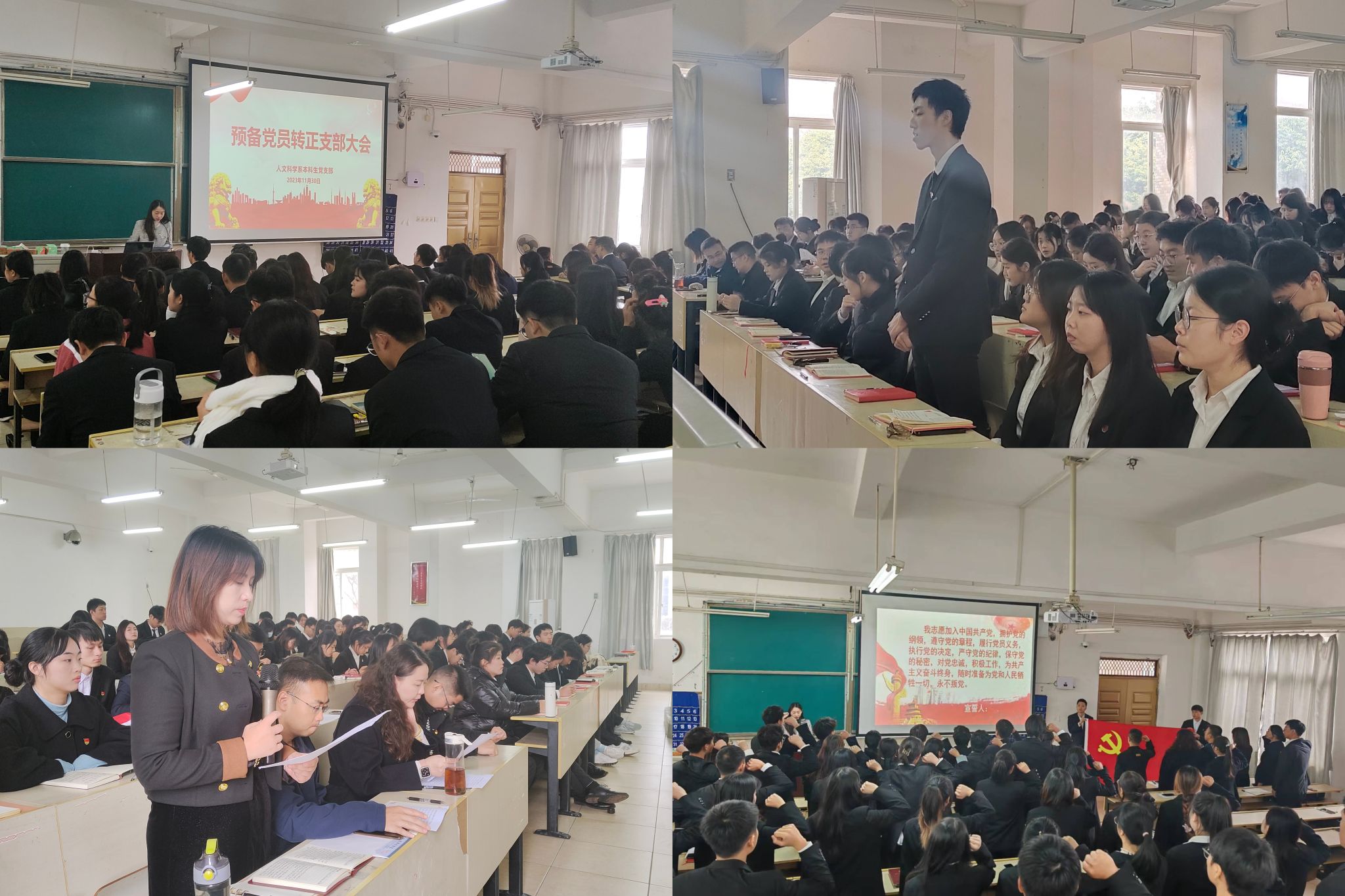 11月30日上午,人文科学系本科生党支部于主教Z1D1召开接收预备党员大会暨预备党员转正大会,大会由罗晨韵同志主持。