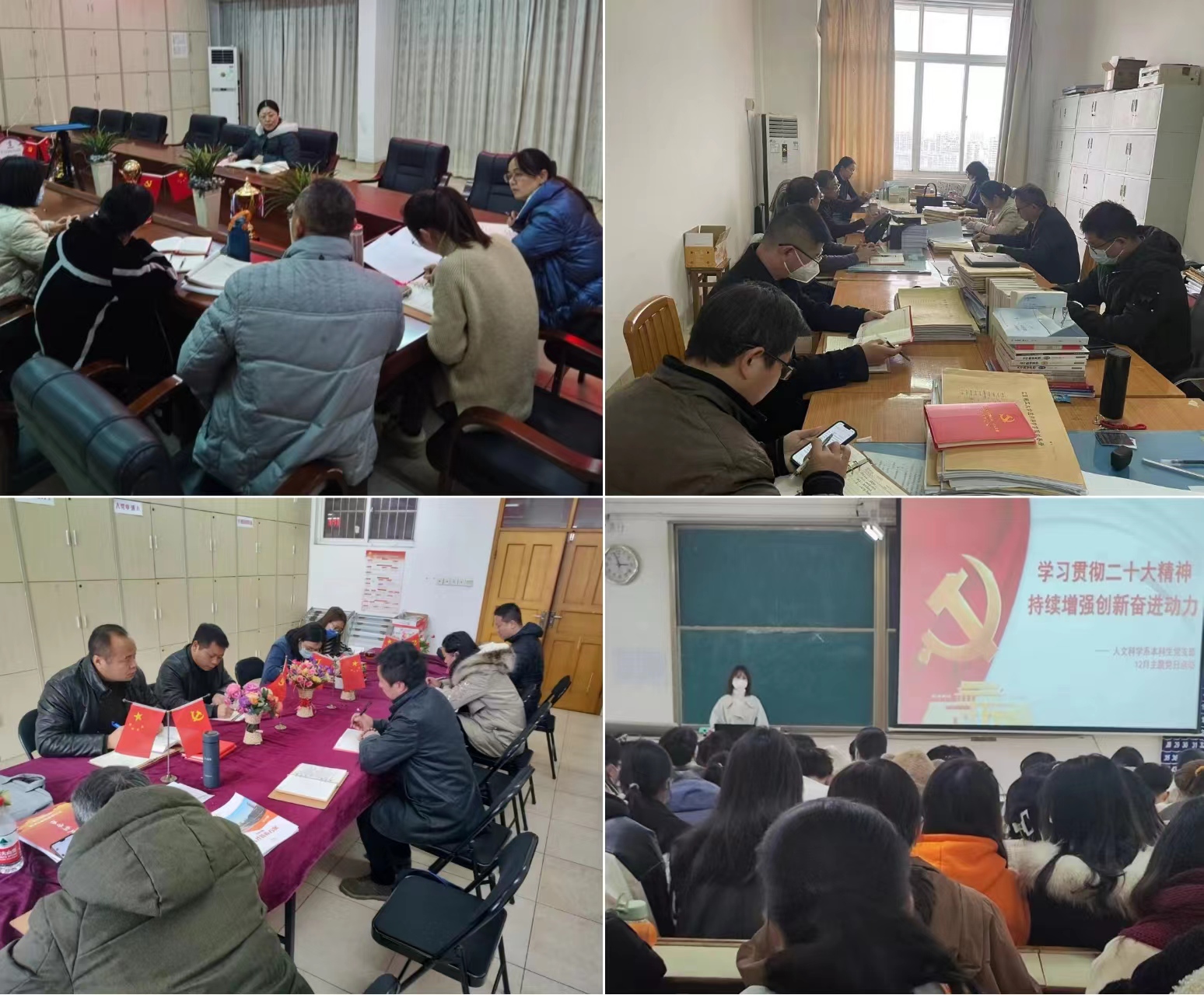 为深刻学习领会党的二十大精神,不断推进学习贯彻党的二十大精神走深走实,12月6日,人文科学系各党支部召开“学习贯彻二十大精神、持续增强创新奋进动力”主题党日活动。各党支部全体党员参加会议。