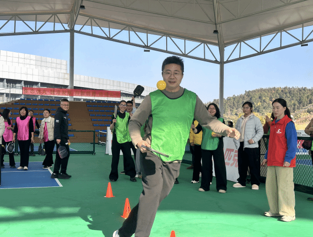 下午14时,团建场地转至上犹生态匹克球运动中心,教师们共同体验活力四射的运动竞技。匹克球作为全球发展最快的新兴体育运动之一,是团队融合的优质载体。活动伊始,专业教练详细讲解了匹克球的规则与技巧,通过趣味颠球、基础对打等热身练习,让教职工们快速上手。在颠球障碍赛与分组对抗赛中,大家精神抖擞、奋勇争先,时而精准吊球、时而快速反击,场地上欢呼声、呐喊声此起彼伏。队员们相互鼓劲、默契补位,在攻防转换间锤炼战术配合,在欢声笑语中打破隔阂,不仅体验了运动的快乐,更提升了团队凝聚力与向心力。