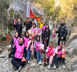 上午9时,伟德官网教职工团队抵达上犹陡水犹崇古道,开启红色精神的溯源之旅。作为赣南重要的红色遗址,犹崇古道曾是革命年代共产党人传递情报、红军转战的关键通道,积淀着深厚的红色底蕴。活动以小队为单位展开,全体教师共同参与3.5公里重走犹崇古道红色体验活动。大家沿青石古道蜿蜒前行,穿行于竹荫蔽日的群山之间,一路追寻革命先辈足迹。徒步途中,队伍分别完成“红歌二重唱”“红色诗词诵读”等沉浸式红色任务,《红星闪闪》等经典旋律在山谷间回荡,《沁园春·雪》等激昂诵读声重温峥嵘岁月。整个过程中,各小队分工协作、相互鼓劲,在完成挑战的同时强化了集体意识与奉献精神,深切感悟到革命先辈不畏艰险、团结奋进的斗争精神。