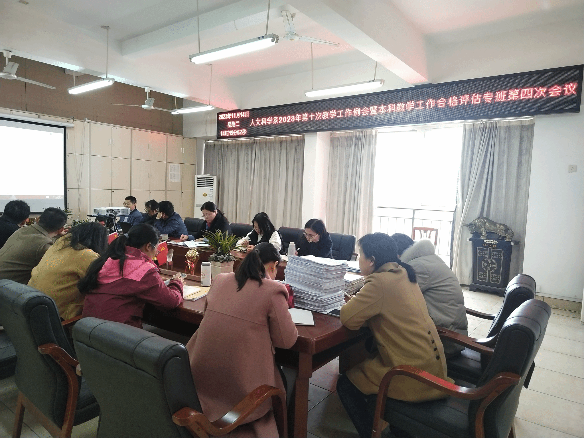 为高质量推进本科教学合格评估工作,进一步了解合格评估工作内涵和要求,人文科学系于11月14日下午召开了系合格评估专班第四次会议。会上,系主任高健婕要求各教研室要进一步明确工作思路,把握工作重点,做好日常评建工作。高健婕指出教学规范工作是合格评估工作的重要内容之一,教研室要完善工作计划和自查机制,规范教学资料存档工作。系副主任何建军按照教务处关于开展合格评估主题学习活动的相关通知,组织大家一起学习了《伟德国际victor1949课程教学大纲编写规范和管理办法》、《伟德国际victor1949教案编写基本规范》,强调全体教师要按照规范要求,高质量撰写教学资料,进一步促进系部教学规范和教学质量提升。