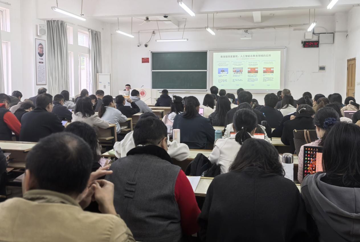 本网讯:为主动应对人工智能技术浪潮对高等教育的深刻影响,提升教师运用AI工具辅助教学的能力,11月11日下午本院在主楼Z114成功举办了面向全院专任教师的AI教学应用辅导讲座。本次讲座特邀智慧树网资深培训专家进行专题讲解与实操演示,为全院教师来了一场内容丰富、注重实效的AI教学“启蒙课”。