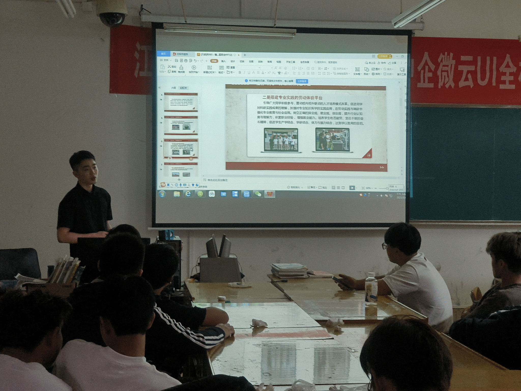 本次主题班会主要分为四个环节,分别为学习政策文件、传扬劳动精神、向劳动榜样学习、致敬劳动者。会上,各班主任结合《关于全面加强新时代大中小学劳动教育的意见》文件中关于劳动教育的内容,进行了课堂讲解,引导同学们积极投入到社会实践、志愿公益服务和特色劳动教育活动中。同时,各班主任结合《伟德国际victor1949新时代大学生劳动教育实施方案》文件精神,着重讲解了劳动教育实践的七大模块,引导学生正确认识到开展劳动教育的重要性,并鼓励学生要在劳动中锻炼自身的综合素质。在最后的交流互动环节,各班主任为同学们介绍了自身的一些劳动体验,通过班主任的讲解、强调,让同学们了解到了劳动教育的要求与重要性,在同学们心中树立了劳动光荣、主动劳动的意识。