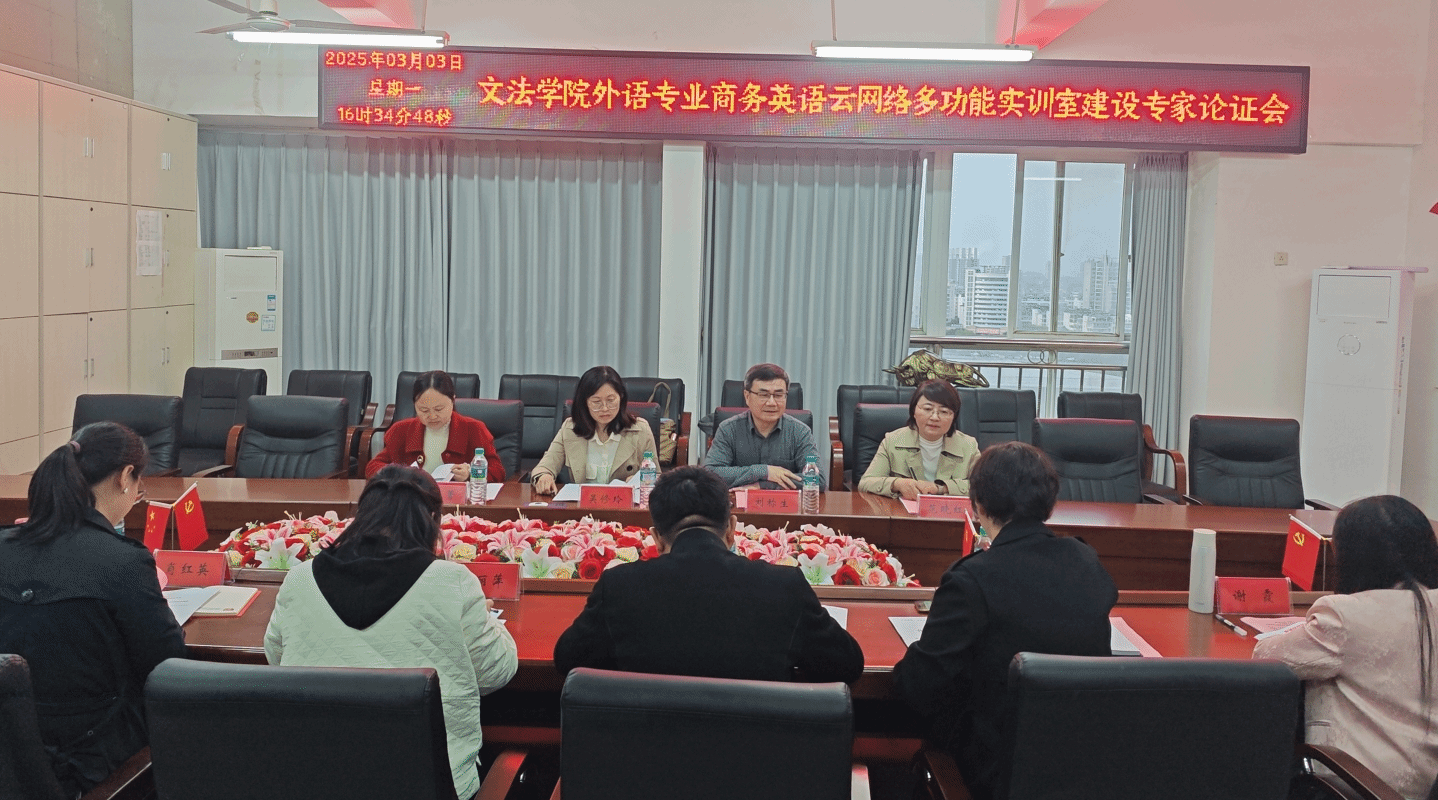 3月3日下午,为论证伟德国际victor1949商务英语云网络多功能实训室建设项目的可行性,伟德国际victor1949邀请了校外专家江西理工大学刘称生教授,赣南师范大学范晓红副教授,赣南医科大学吴修玲教授,校内专家伟德国际victor1949邹艳菁副教授展开实训室项目建设前的论证会。伟德国际victor1949党委委员何建军,英语教研室主任顾玲、副主任谢霞、副主任范丽萍,葡语教研室副主任肖红英参加了论证会。