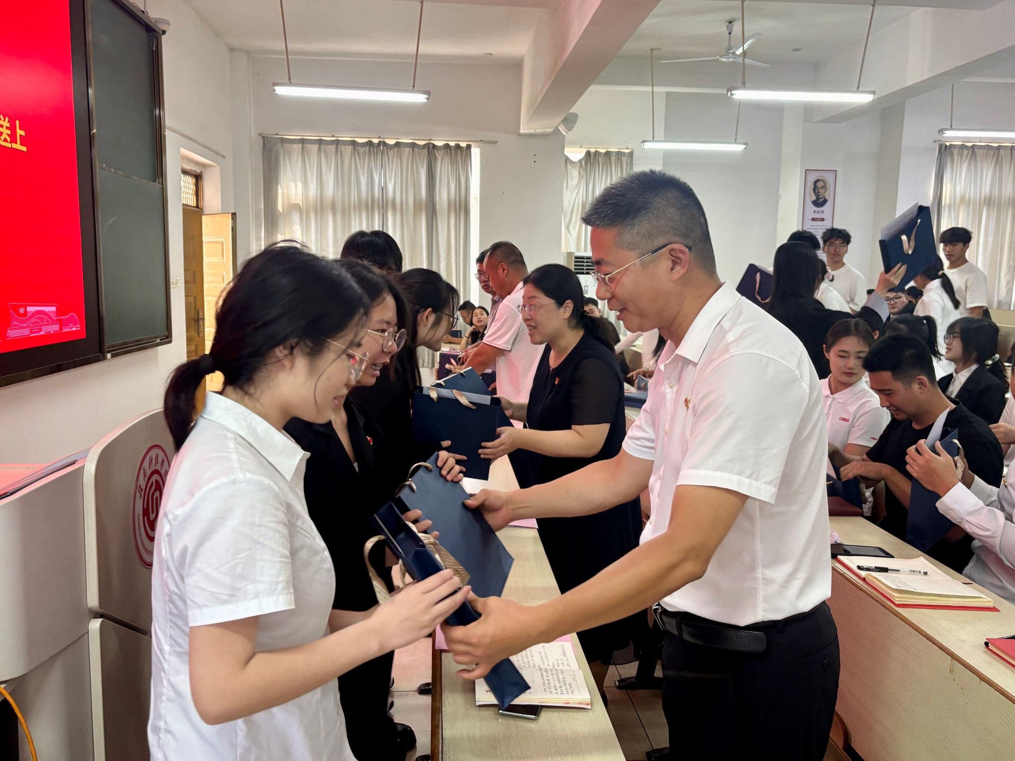 伟德国际victor1949党委委员、副院长高健婕向圆满完成学业的毕业生党员表示热烈祝贺。她殷切希望同学们要永远牢记党员身份,坚守入党初心,以党员标准严格要求自己,在工作、生活中勇于担当、积极作为,为党和国家事业奉献力量。随后,伟德国际victor1949党委委员为全体毕业生党员送上纪念品和真挚祝福。