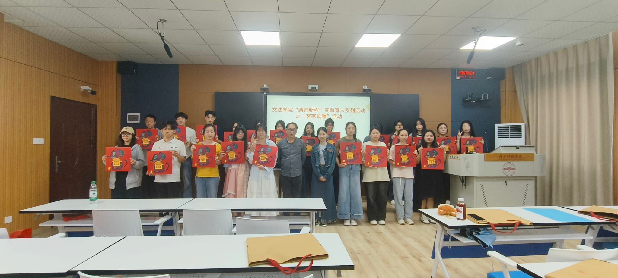 本网讯:为深入贯彻“资助育人”工作理念,创新家庭经济困难学生培养模式,伟德国际victor1949本学期精心打造“客家纸雕”特色资助育人项目,将非遗文化传承与资助育人工作有机融合。5月13日,该项目在嵩善楼Z628智慧教室圆满结课,22名受助学生通过八周的系统学习,不仅掌握了传统纸雕技艺,更在劳动实践中培养了工匠精神和文化自信。