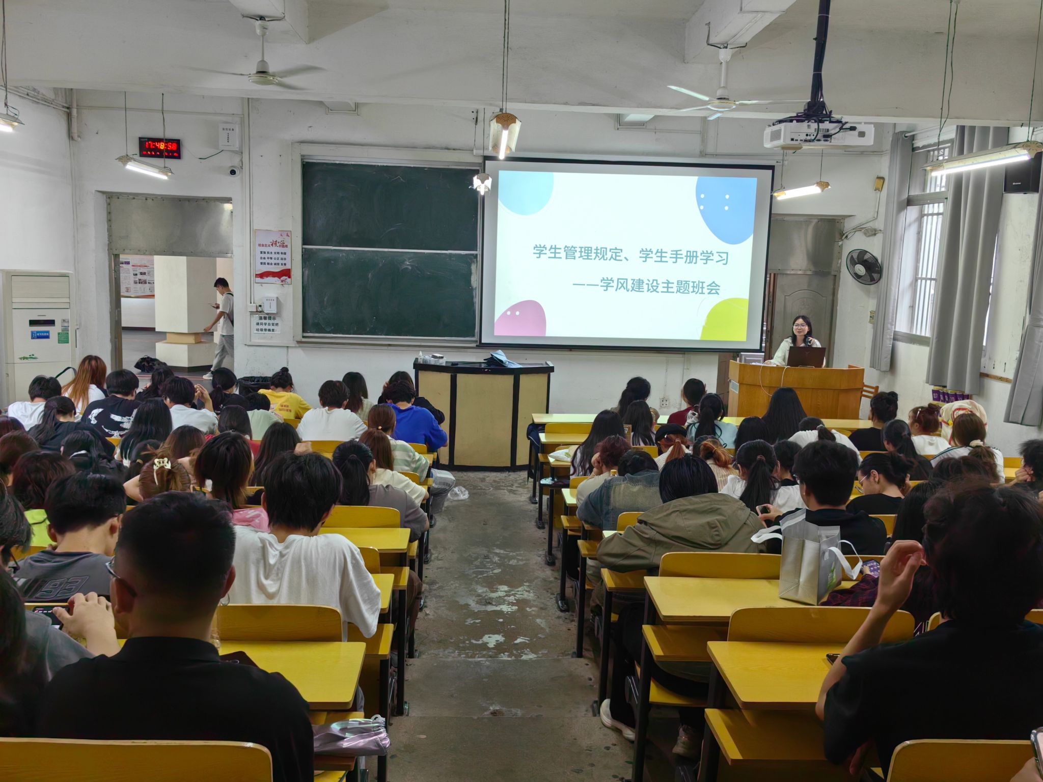 本网讯:4月25日下午,伟德国际victor194923级新生班级在红旗校区教学楼举办了一场以学风建设及形势与政策为主题的教育活动。此次活动由王奕婷老师主持,旨在提升学生的学术素养和对国家形势政策的深刻理解。