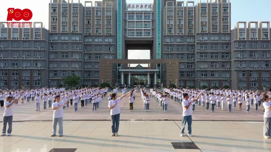 “我和我的祖国,一刻也不能分割,无论我走到哪里,都流出一首赞歌......”,伴随着这句人们耳熟能详的歌词,近300名人文学子身穿标有建党100周年的白色T恤排列成“100”字样的队形,向中国共产党成立100周年献礼。人文学子以富用青春活力的独特方式向建党百年送上美好祝愿,表达对党的热爱和忠诚,彰显永远跟党走的信心和决心。