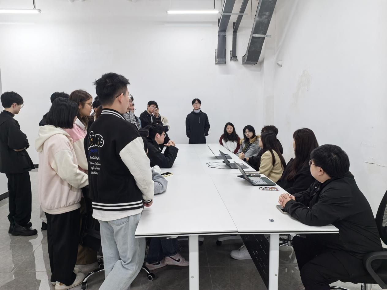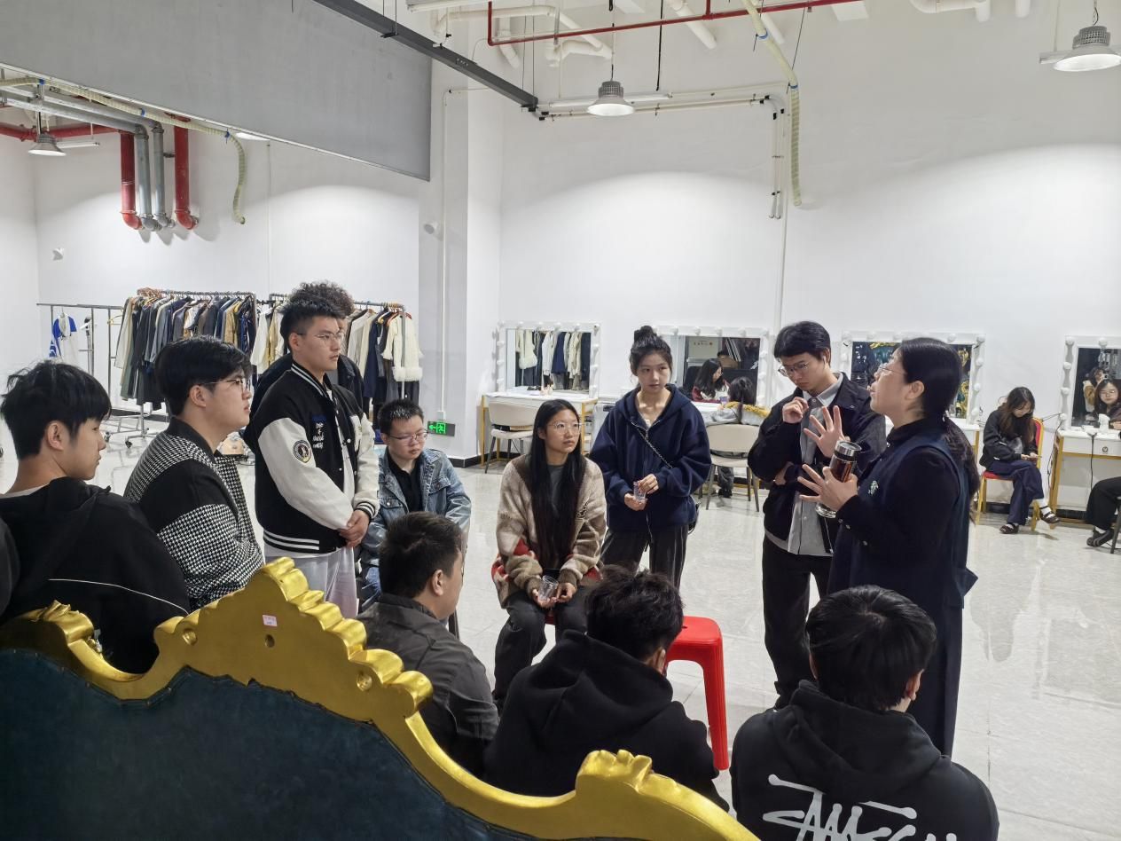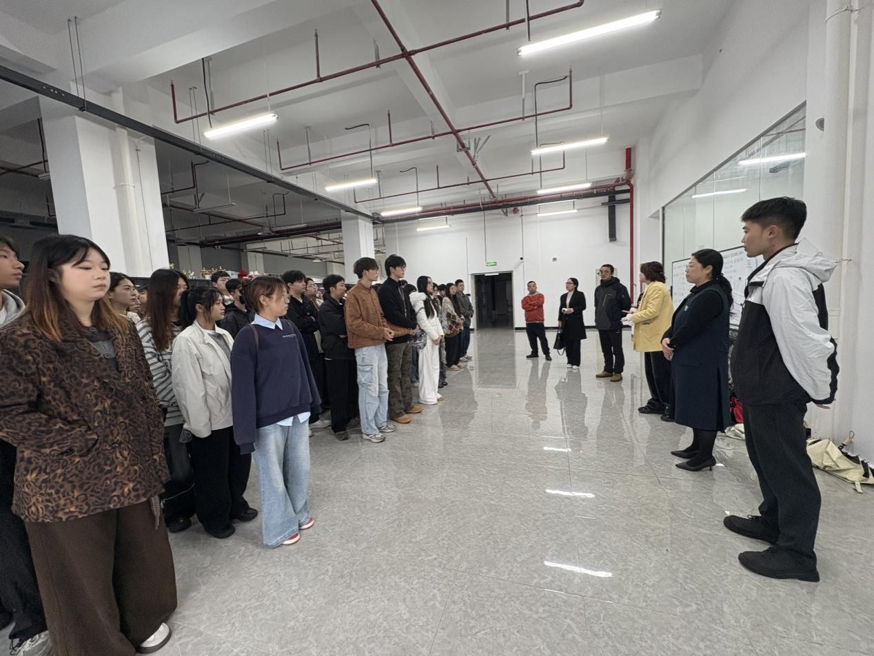 当日上午,师生一行抵达叁鸟(赣州)科技有限公司后,在企业对接人的带领下开启了工作岗位与工作环境考察。公司团队首先围绕短剧行业发展现状、核心业务板块及人才需求方向进行介绍,重点展示了短剧制作中的视觉设计、数字后期、场景搭建等关键环节。视觉传达设计专业学生认真观察短剧海报设计、角色形象视觉包装的工作流程,与企业设计师交流品牌视觉符号在短剧中的运用技巧;数字媒体艺术专业学生聚焦后期剪辑、特效制作、短视频运营等岗位,详细询问软件操作要求与项目周期管理细节;环境设计专业学生则针对短剧实景拍摄场地的空间规划、场景氛围营造与功能性设计展开调研,深入了解行业对空间设计的实战需求。实地考查让学生们跳出课堂理论框架,直观感受到设计学科在影视行业的应用场景,为职业规划提供了清晰参考。