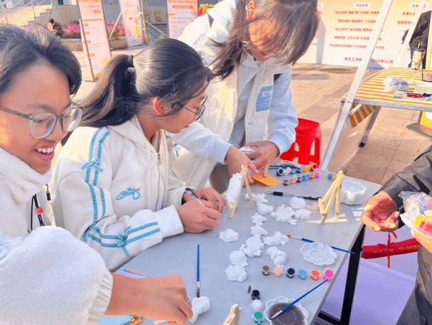 活动现场吸引了许多考研学子参与,凭借学生证即可领取了石膏娃娃的手工材料,参与现场制作。同学们制作了许多精美的作品,舒缓了学习的精神压力,许多同学感慨:这份惊喜让他们感到无比温暖